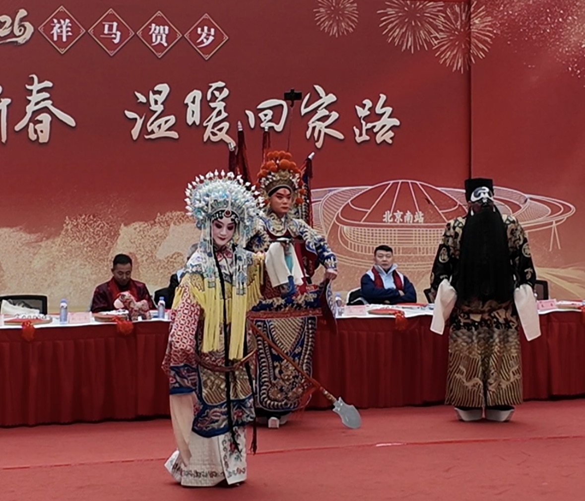 2月10日農歷小年,北京南站候車大廳上演戲曲快閃。中國經濟網記者鞠然/攝