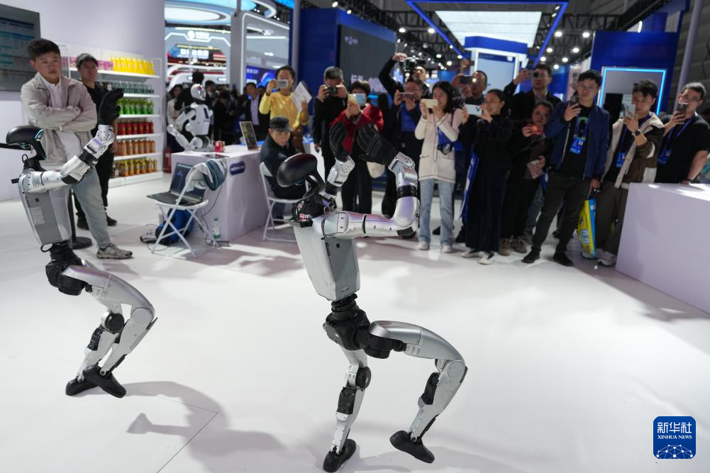 11月6日,觀眾在2025年世界互聯網大會“互聯網之光”博覽會現場觀摩人形機器人跳舞。新華社記者 黃宗治 攝