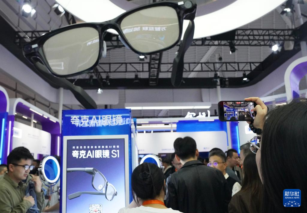11月6日,觀眾在2025年世界互聯網大會“互聯網之光”博覽會現場的AI眼鏡展臺參觀拍照。新華社記者 劉瓊 攝