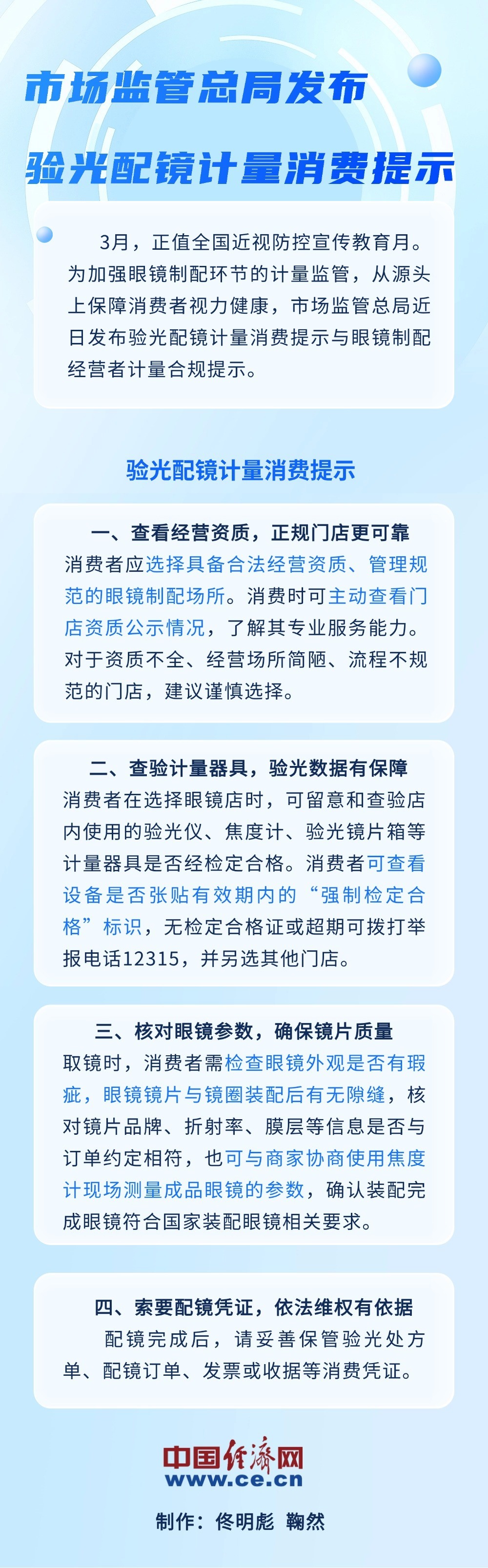 【圖解】市場監管總局發布驗光配鏡計量消費提示