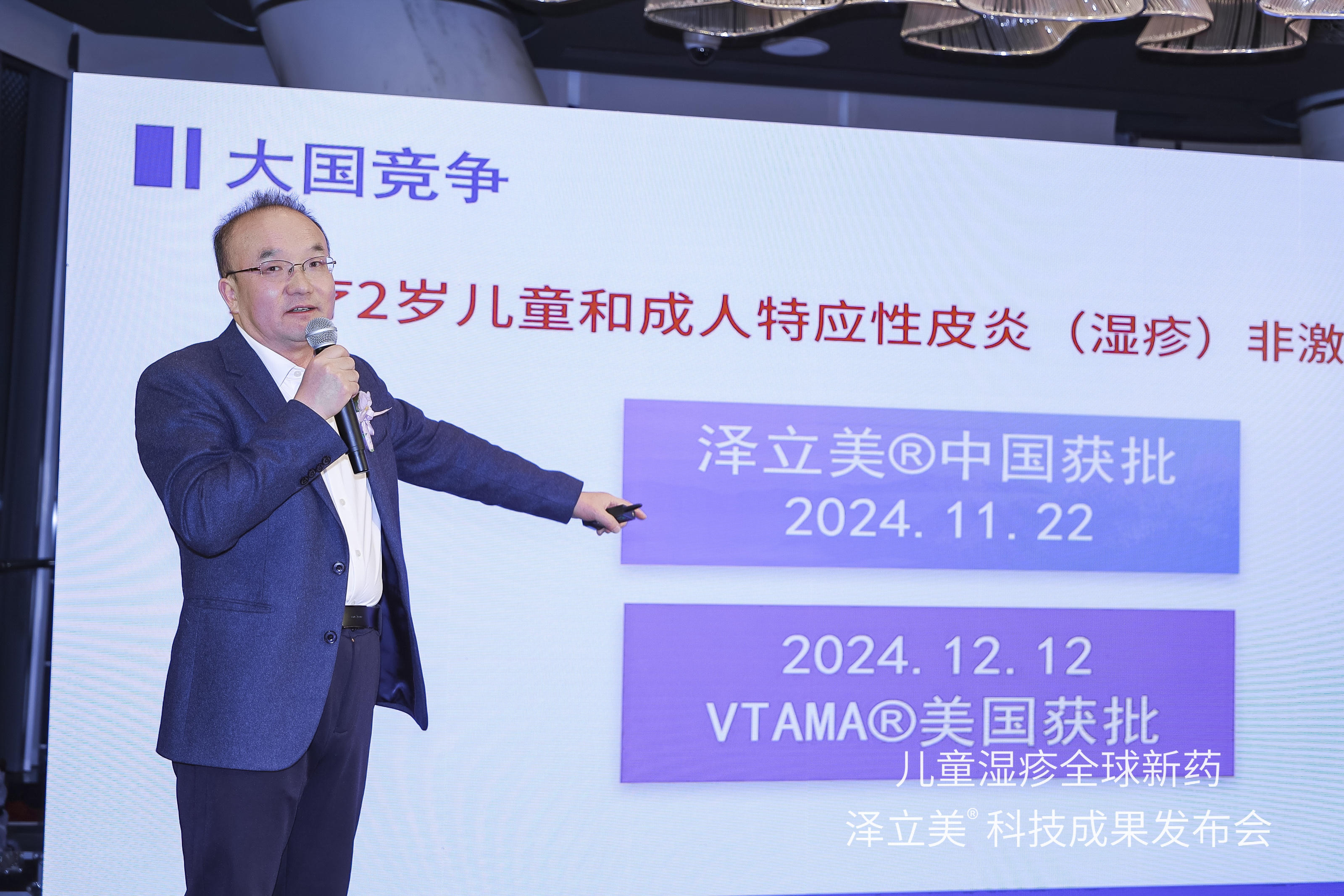 2024年12月28日,兒童濕疹全球新藥澤立美科技成果發布會在上海舉行。圖為澤德曼醫藥科技有限公司董事長兼首席執行官陳庚輝博士進行主題報告。
