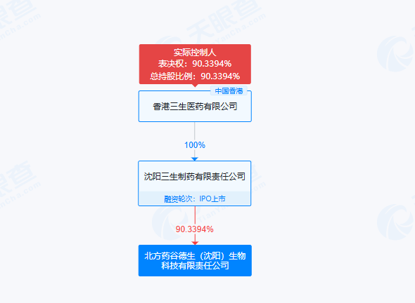 天眼查顯示,北方藥谷德生 (沈陽)生物科技有限責任公司注冊資本383000萬人民幣,成立于2018年,系三生制藥成員。